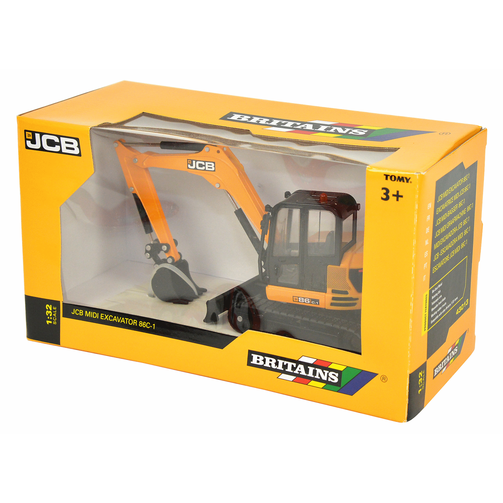 This is a detailed diecast model of the JCB Midi Excavator 86C-1. This model is the release of the new look JCB complete with a rotating cab, functioning arm with bucket and rubber tracks. An authentic 1:32 scale model replica, constructed from die cast metal and plastic and would make a welcome addition to any Britains collection.