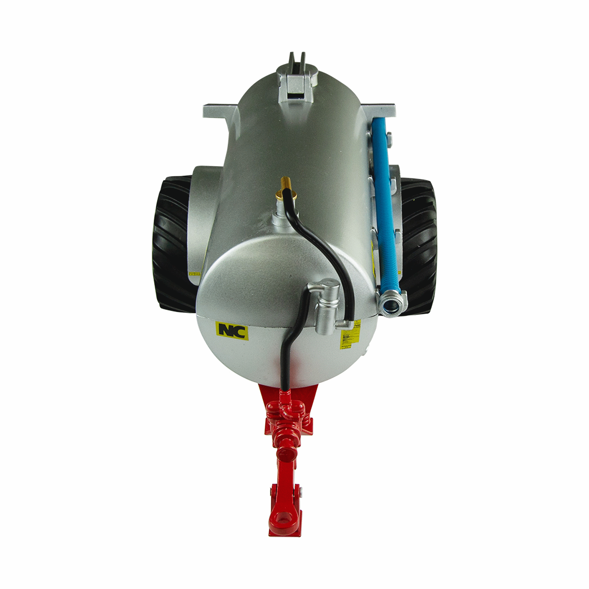 Following the refresh of the roadside, The NC fieldside tanker has been updated in a silver finish with red detail for 2019 range. The fieldside spreads the slurry on the fields and used in conjunction with the Roadside tanker, this essential bit of farming kit comes complete with 2 fill points, a suction hose with brackets locate on the side for storage, stabilising foot, rear discharge valve moveable top fill lid and large tread floatation tyres. This implement attaches to the hitch of most Britains tractors and is a great addition to our range.